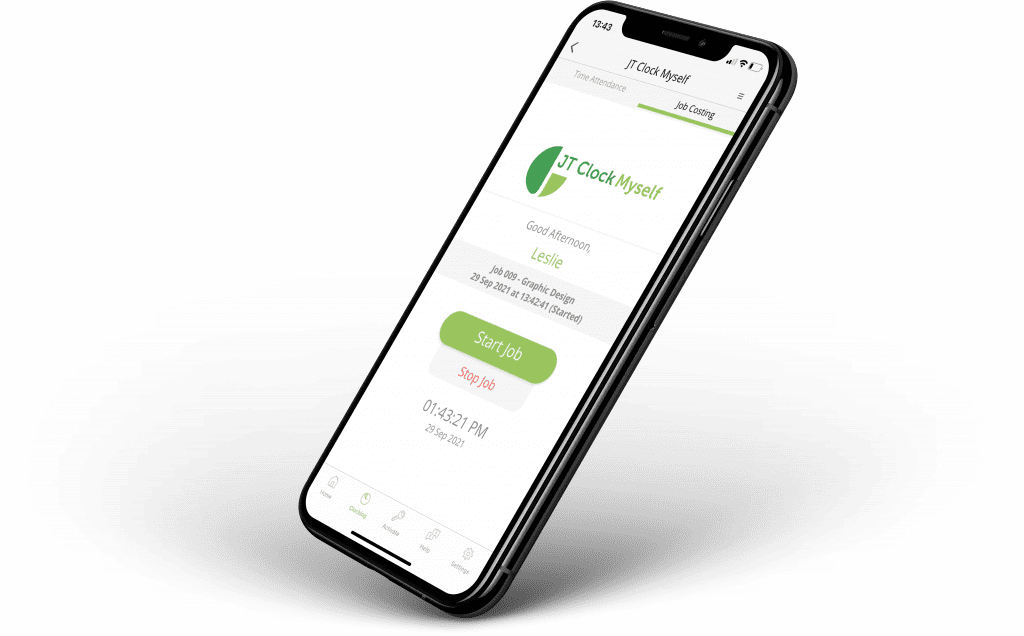 The Job Costing function in the JT App lets employees allocate worked hours to specific jobs or projects directly from their mobile devices, ensuring accurate tracking of labour costs and project time in real time